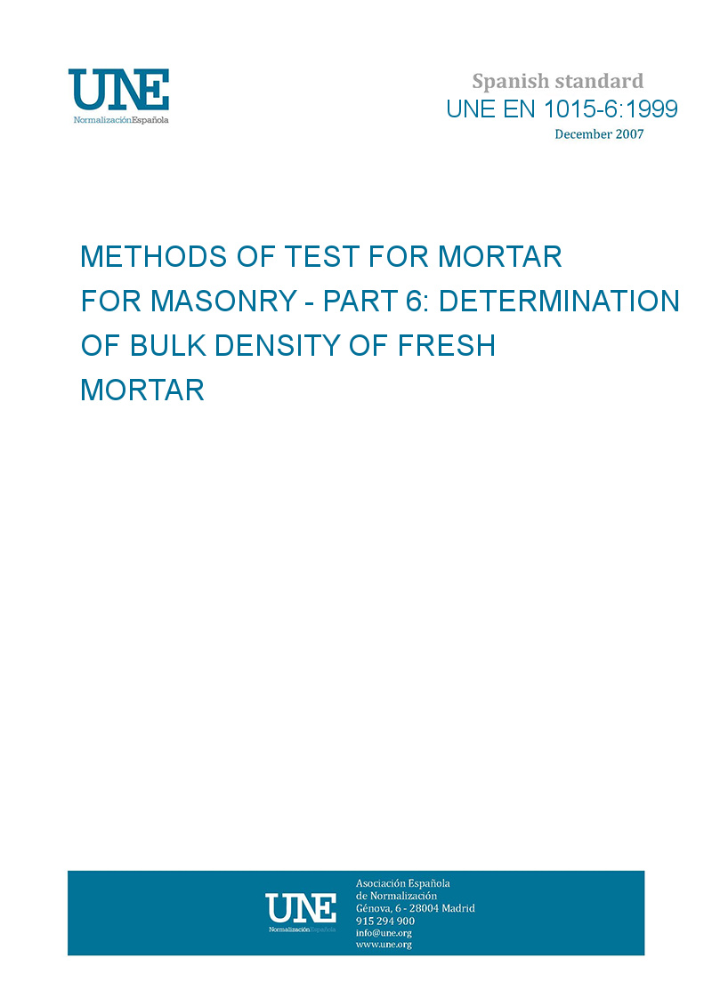 Métodos de ensayo de los morteros para albañilería. Parte 6: Determinación de la densidad aparente del mortero fresco.