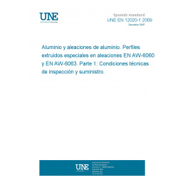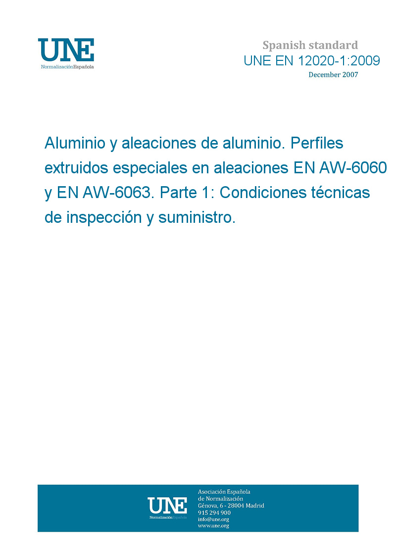 >UNE standards>UNE EN 12020-1:2009 Aluminium and aluminium alloys - Extruded precision profiles in alloys EN AW-6060 and EN AW-6063 - Part 1: Technical conditions for inspection and delivery