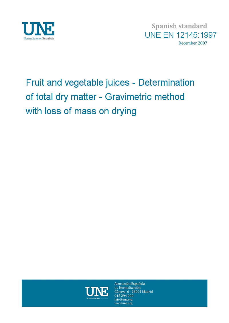 Zumos de frutas y hortalizas. Determinación del residuo seco total. Método gravimétrico con pérdida de masa por desecación.
