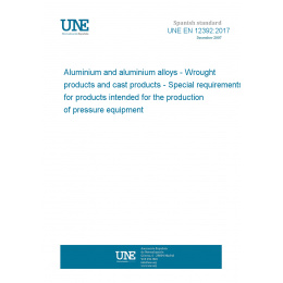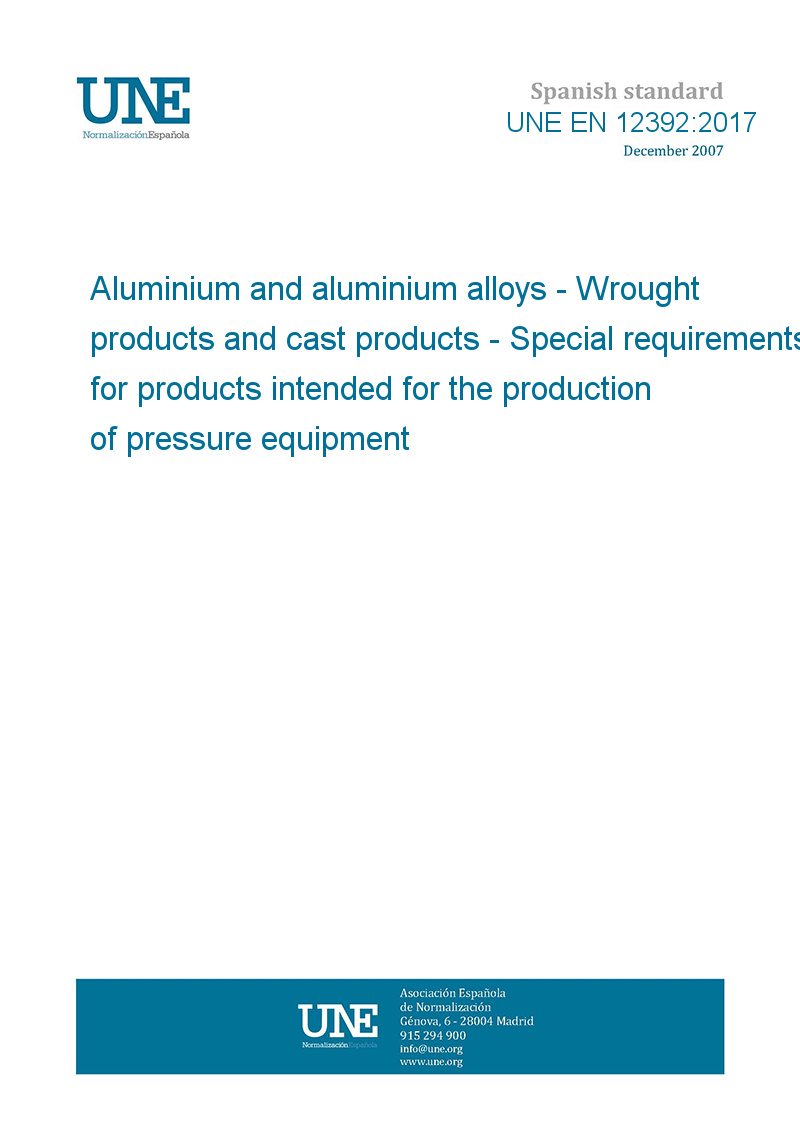 >UNE standards>UNE EN 12392:2017 Aluminium and aluminium alloys - Wrought products and cast products - Special requirements for products intended for the production of pressure equipment