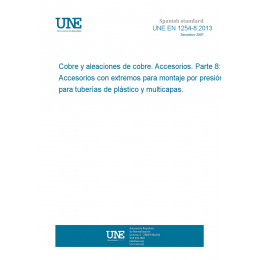 >UNE standards>UNE EN 1254-8:2013 Copper and copper alloys - Plumbing fittings - Part 8: Fittings with press ends for use with plastics and multilayer pipes