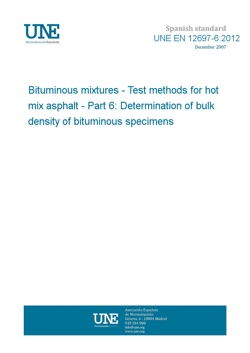 >UNE standards>UNE EN 12697-6:2012 Bituminous mixtures - Test methods for hot mix asphalt - Part 6: Determination of bulk density of bituminous specimens