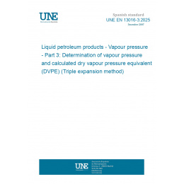 Productos petrolíferos líquidos. Presión de vapor. Parte 3: Determinación de la presión de vapor y de la presión de vapor seco equivalente calculada (DVPE) (Método de expansión triple).