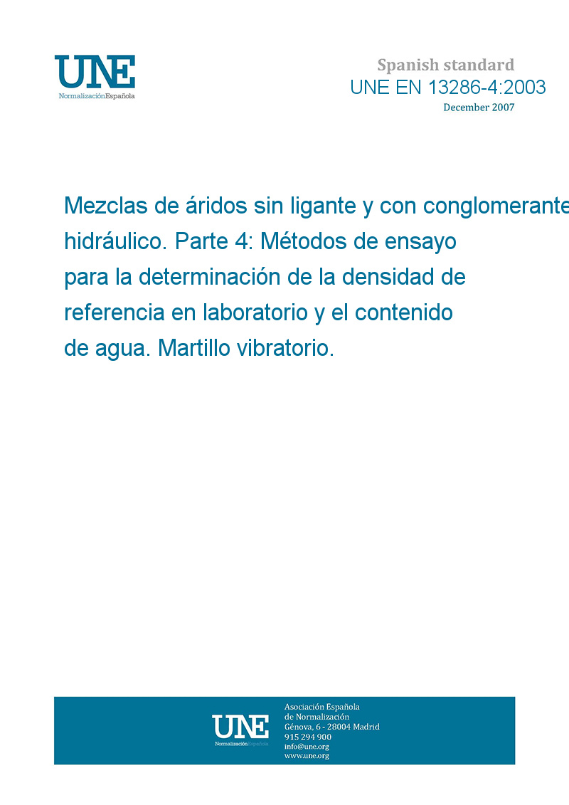 Mezclas de áridos sin ligante y con conglomerante hidráulico. Parte 4: Métodos de ensayo para la determinación de la densidad de referencia en laboratorio y el contenido de agua. Martillo vibratorio.