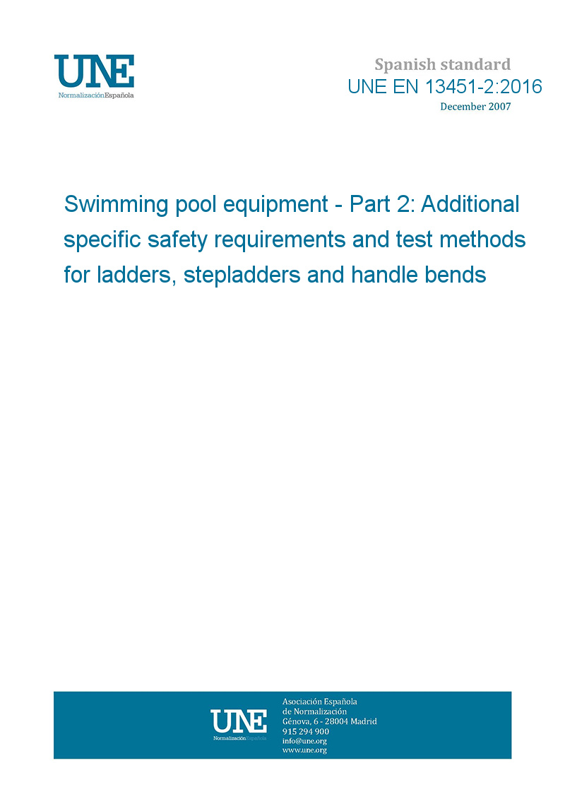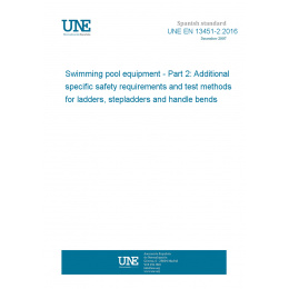 >UNE standards>UNE EN 13451-2:2016 Swimming pool equipment - Part 2: Additional specific safety requirements and test methods for ladders, stepladders and handle bends