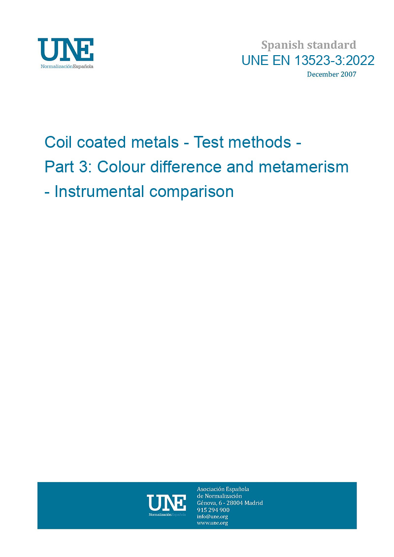 >UNE standards>UNE EN 13523-3:2022 Coil coated metals - Test methods - Part 3: Colour difference and metamerism - Instrumental comparison