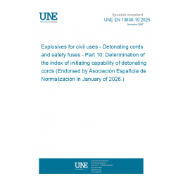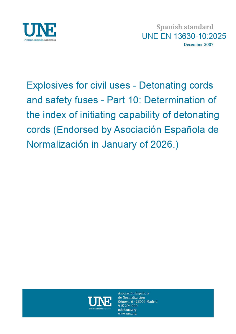 Explosivos para uso civil. Cordones detonantes y mechas de seguridad. Parte 10: Determinación del índice de capacidad de iniciación de los cordones detonantes. (Ratificada por la Asociación Española de Normalización en enero de 2026.)