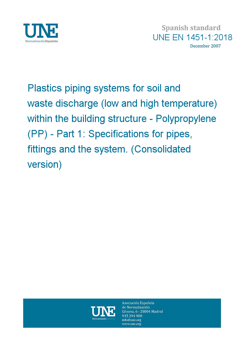 Sistemas de canalización en materiales plásticos para evacuación de aguas residuales (a baja y a alta temperatura) en el interior de la estructura de los edificios. Polipropileno (PP). Parte 1: Especificaciones para tubos, accesorios y el sistema. (Versión consolidada)