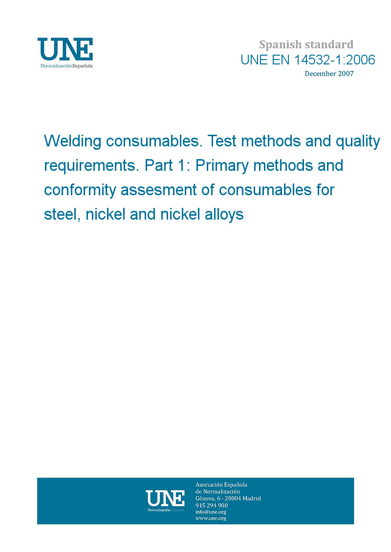 Consumibles para el soldeo. Métodos de ensayo y requisitos de calidad. Parte 1: Métodos primarios y evaluación de la conformidad de consumibles para acero, níquel y aleaciones de níquel.