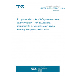This standard UNE EN 1459-4:2021+A1:2026 Rough-terrain trucks - Safety requirements and verification - Part 4: Additional requirements for variable-reach trucks handling freely suspended loads is classified in these ICS categories: