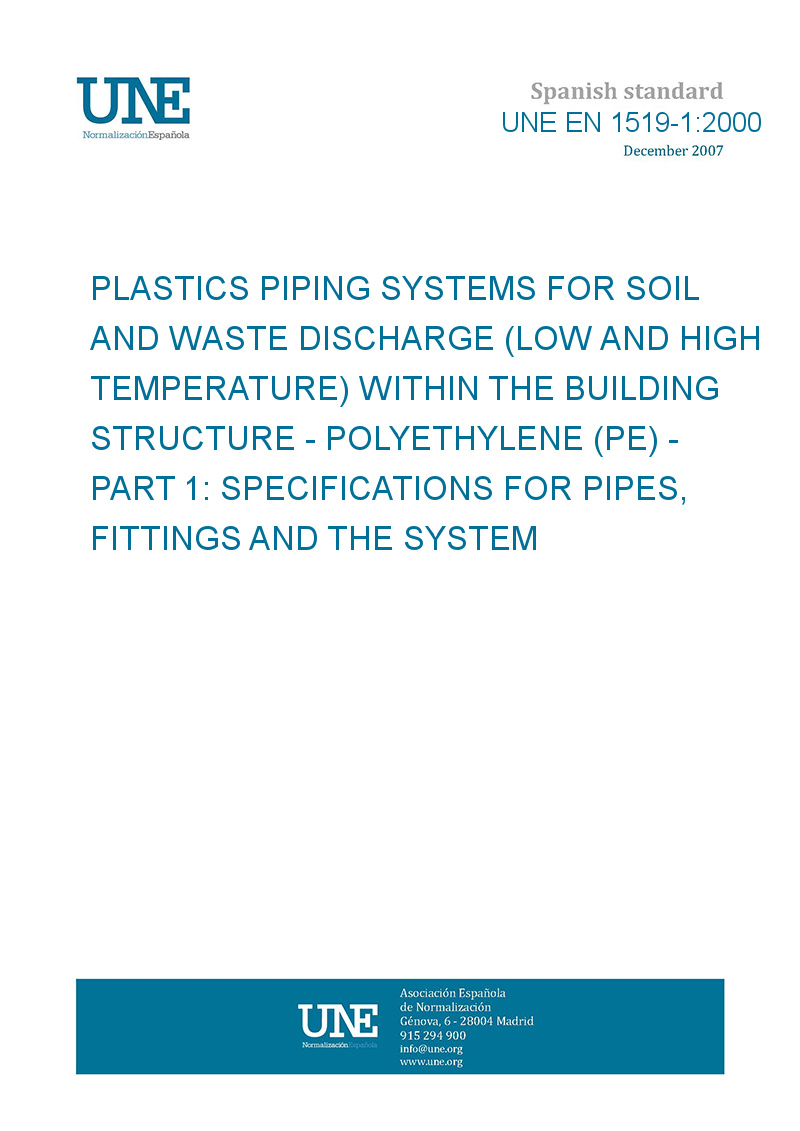 Sistemas de canalización en materiales plásticos para la evacuación de aguas residuales (a baja y a alta temperatura) en el interior de la estructura de los edificios. Polietileno (PE). Parte 1: Especificaciones para tubos, accesorios y el sistema.