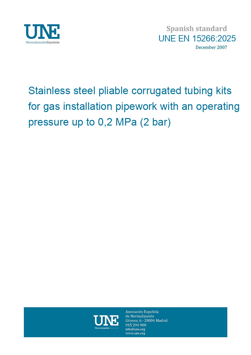 This standard UNE EN 15266:2025 Stainless steel pliable corrugated tubing kits for gas installation pipework with an operating pressure up to 0,2 MPa (2 bar) is classified in these ICS categories: