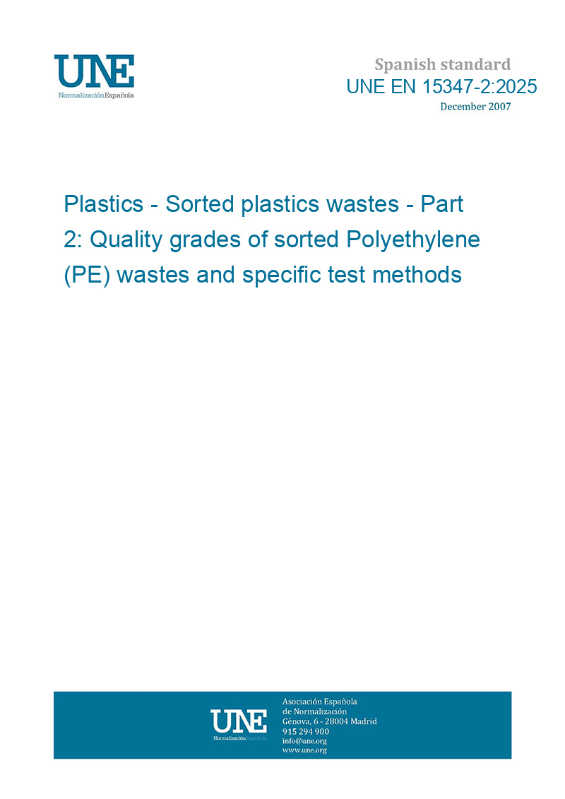 Plásticos. Residuos plásticos clasificados. Parte 2: Grados de calidad de los residuos plásticos de polietileno (PE) clasificados y métodos de ensayo específicos.