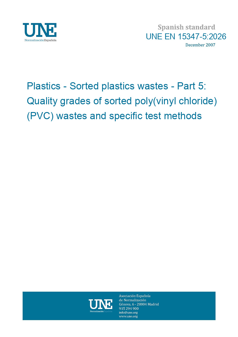 Plásticos. Residuos plásticos clasificados. Parte 5: Grados de calidad de los residuos plásticos clasificados de poli(cloruro de vinilo) (PVC) y métodos de ensayo específicos.