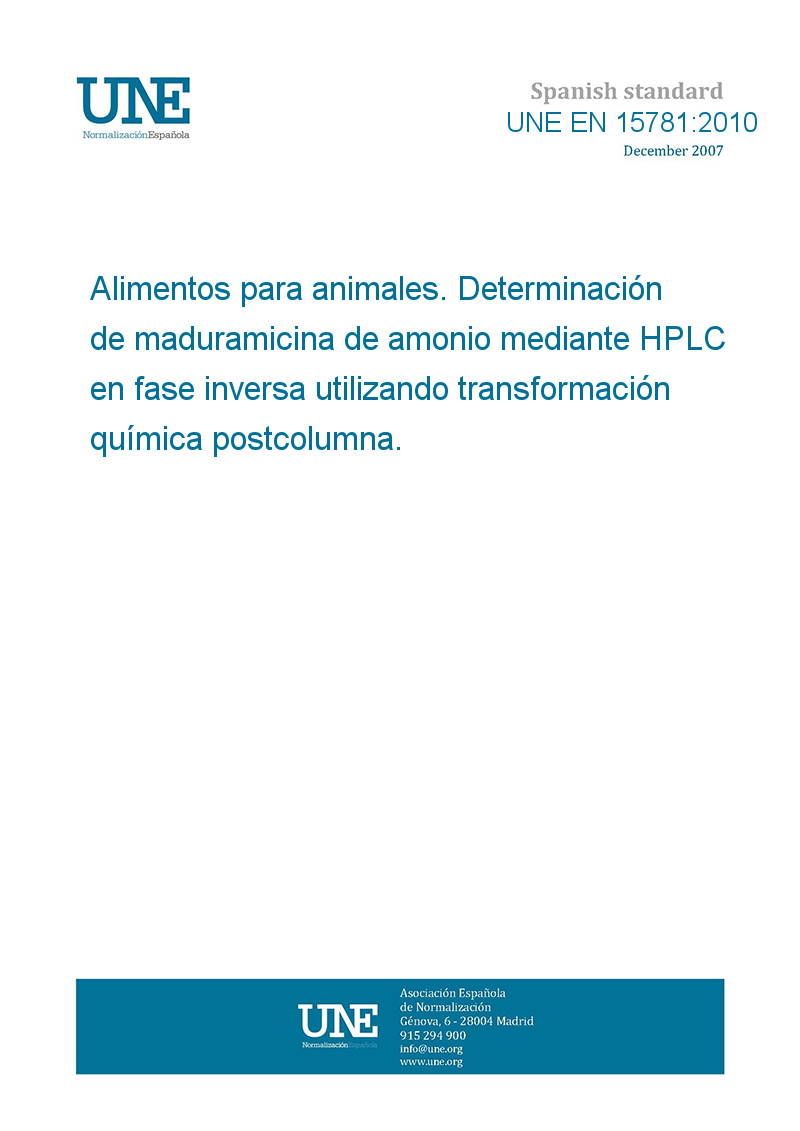 Alimentos para animales. Determinación de maduramicina de amonio mediante HPLC en fase inversa utilizando transformación química postcolumna.