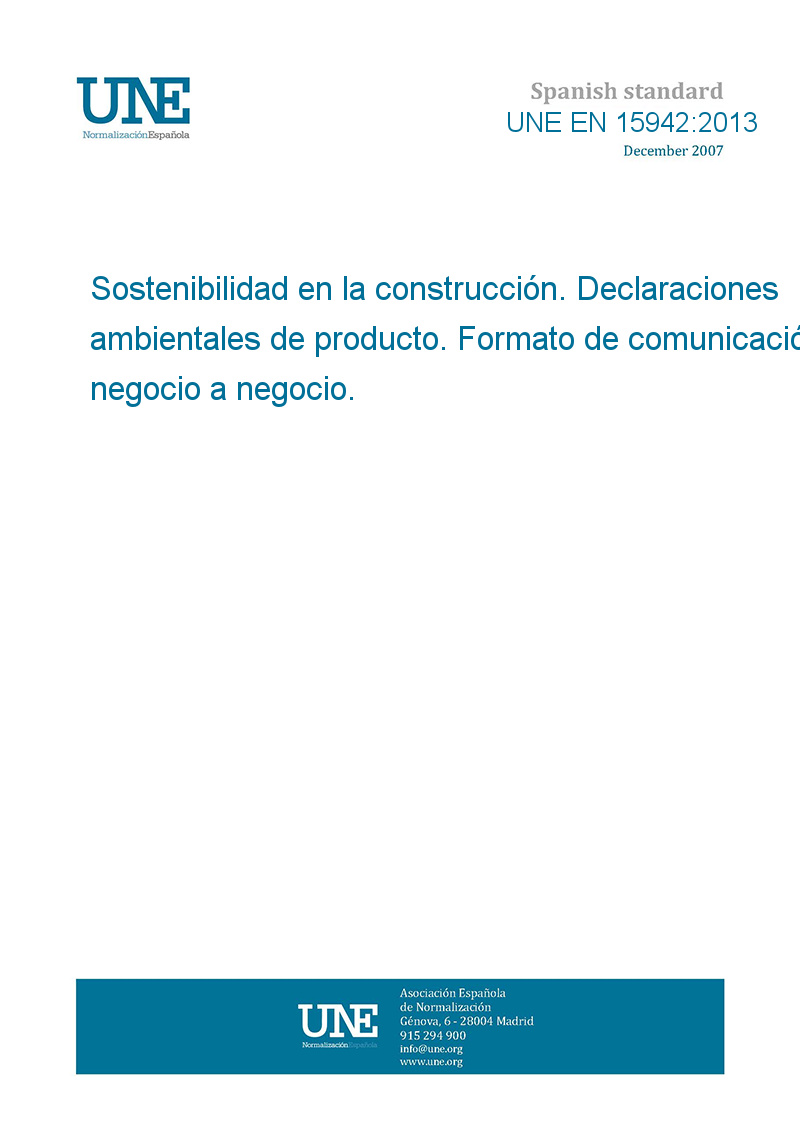 >UNE standards>UNE EN 15942:2013 Sustainability of construction works - Environmental product declarations - Communication format business-to-business