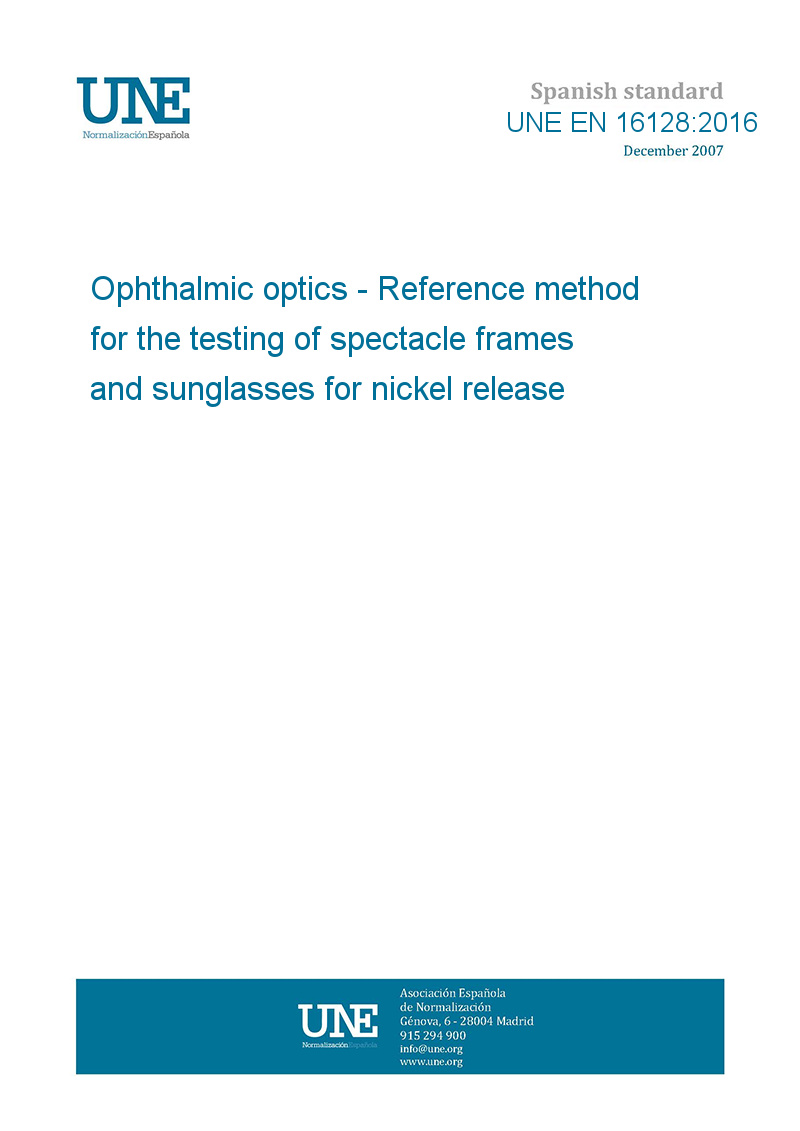Óptica oftálmica. Método de ensayo de referencia para la determinación de la liberación de níquel de las monturas de gafas y de las gafas de sol.