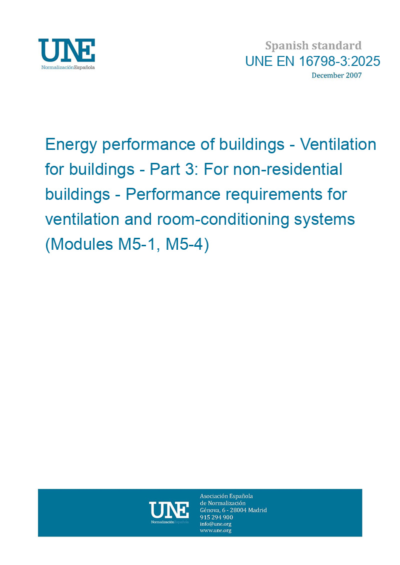 Eficiencia energética de los edificios. Ventilación de los edificios. Parte 3: Para edificios no residenciales. Requisitos de eficiencia para los sistemas de ventilación y climatización (Módulos M5-1, M5-4).