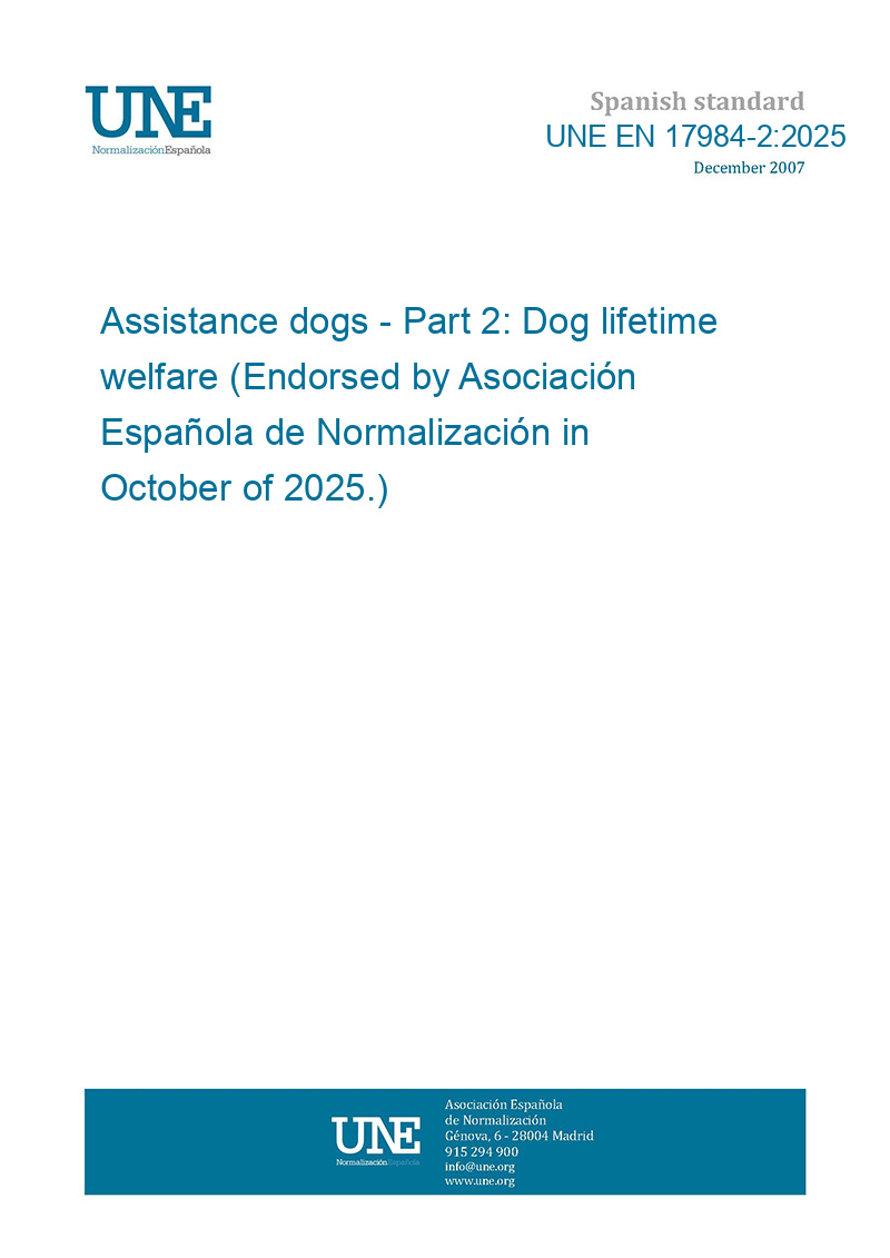 Assistance dogs - Part 2: Dog lifetime welfare (Endorsed by Asociación Española de Normalización in October of 2025.)