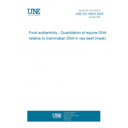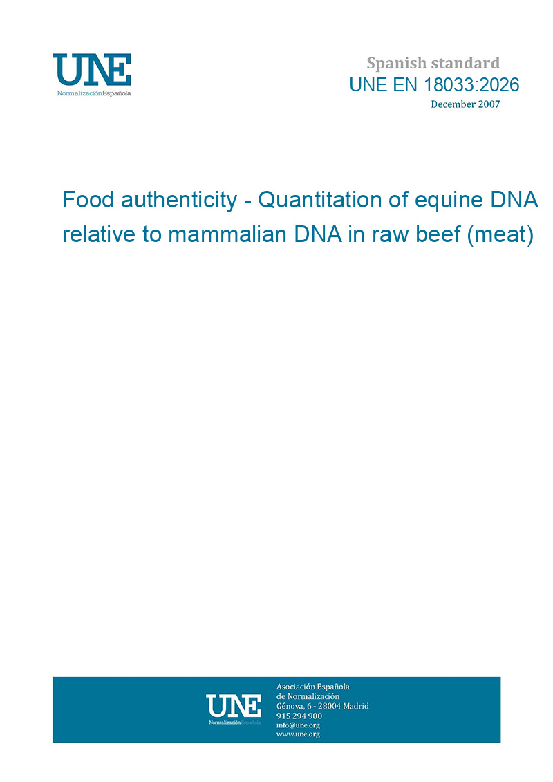 This standard UNE EN 18033:2026 Food authenticity - Quantitation of equine DNA relative to mammalian DNA in raw beef (meat) is classified in these ICS categories: