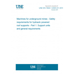 >UNE standards>UNE EN 1804-1:2003+A1:2010 Machines for underground mines - Safety requirements for hydraulic powered roof supports - Part 1: Support units and general requirements