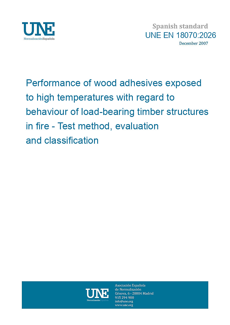 Prestaciones de los adhesivos para madera expuestos a altas temperaturas en relación con el comportamiento de las estructuras portantes de madera frente al fuego. Método de ensayo, evaluación y clasificación.
