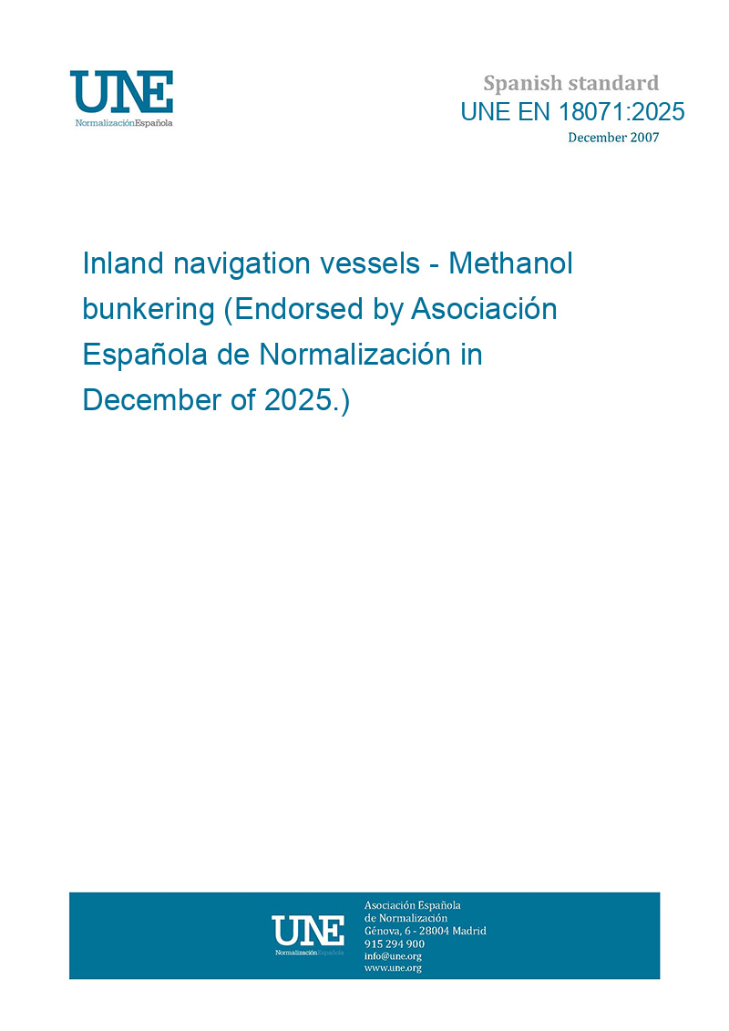 Buques de navegación interior. Repostaje de metanol (Ratificada por la Asociación Española de Normalización en diciembre de 2025.)