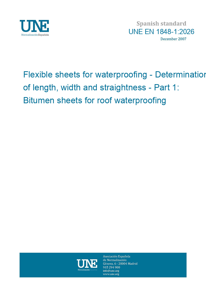 This standard UNE EN 1848-1:2026 Flexible sheets for waterproofing - Determination of length, width and straightness - Part 1: Bitumen sheets for roof waterproofing is classified in these ICS categories: