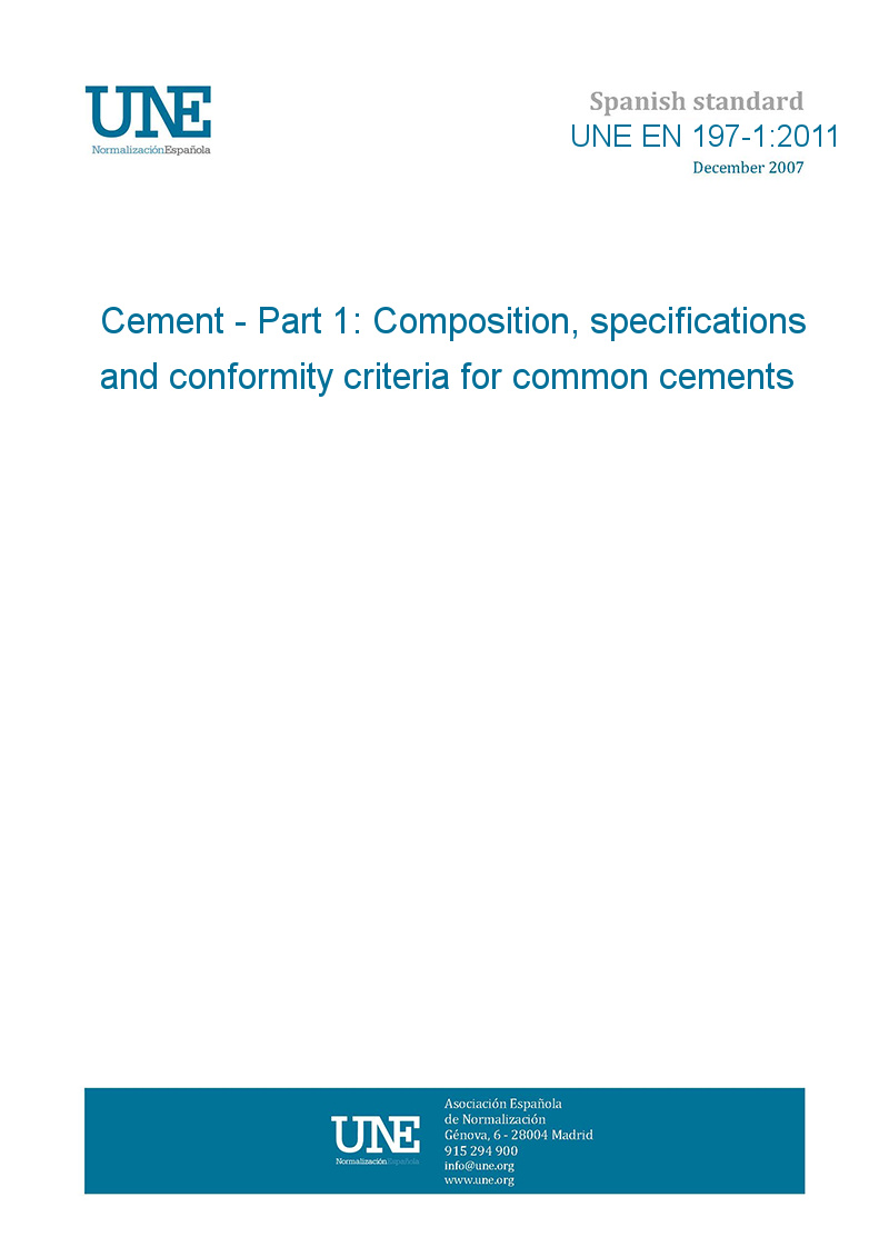 >UNE standards>UNE EN 197-1:2011 Cement - Part 1: Composition, specifications and conformity criteria for common cements