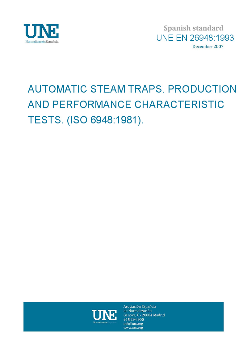 >UNE standards>UNE EN 26948:1993 Automatic steam traps - Production and performance characteristic tests (ISO 6948:1981)
