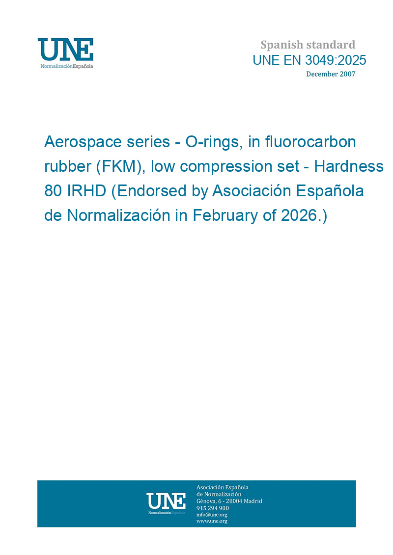 Material aeroespacial. Juntas tóricas en elastómero fluorocarbonado (FKM), de débil deformación remanente tras la compresión. Dureza 80 IRHD. (Ratificada por la Asociación Española de Normalización en febrero de 2026.)