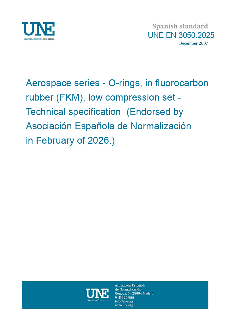 Material aeroespacial. Juntas tóricas en elastómero (fluorocarbono) (FKM), de débil deformación remanente tras la compresión. Especificación técnica. (Ratificada por la Asociación Española de Normalización en febrero de 2026.)