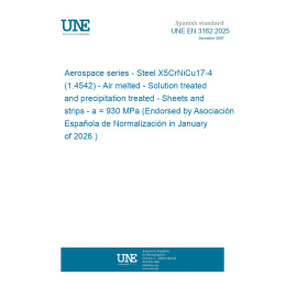 Material aeroespacial. Acero X5CrNiCu17-4 (1.4542). Fundido al aire. Tratado en solución y precipitación. Chapas y bandas a <= 6 mm - Rm >= 930 MPa (Ratificada por la Asociación Española de Normalización en enero de 2026.)