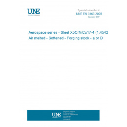 Material aeroespacial. Acero X5CrNiCu17-4 (1.4542). Fundido al aire. Templado. Productos de forja - a o D <= 300 mm (Ratificada por la Asociación Española de Normalización en enero de 2026.)