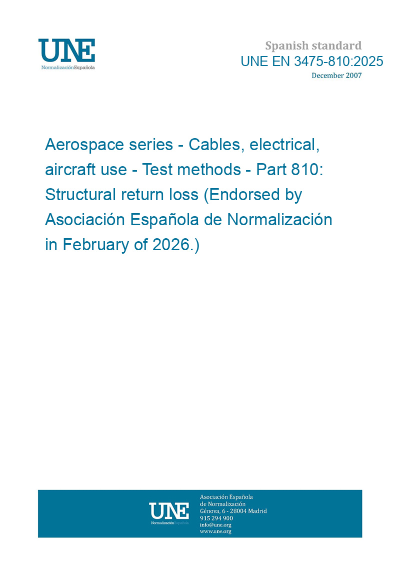 Material aeroespacial. Cables eléctricos de uso en aeronaves. Métodos de ensayo. Parte 810: Pérdida de retorno estructural. (Ratificada por la Asociación Española de Normalización en febrero de 2026.)
