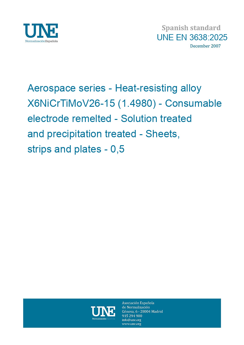 Material aeroespacial. Aleación resistente al calor X6NiCrTiMoV26-15 (1.4980). Refundido con electrodo consumible. Tratado en solución y precipitación. Chapas, bandas y planchas. 0,5 mm <= a <= 10 mm (Ratificada por la Asociación Española de Normalización en enero de 2026.)
