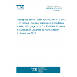 Aerospace series - Steel X5CrNiCu17-4 (1.4542) - Air melted - Solution treated and precipitation treated - Forgings - a or D <= 200 mm - Rm >= 930 MPa (Endorsed by Asociación Española de Normalización in January of 2026.)