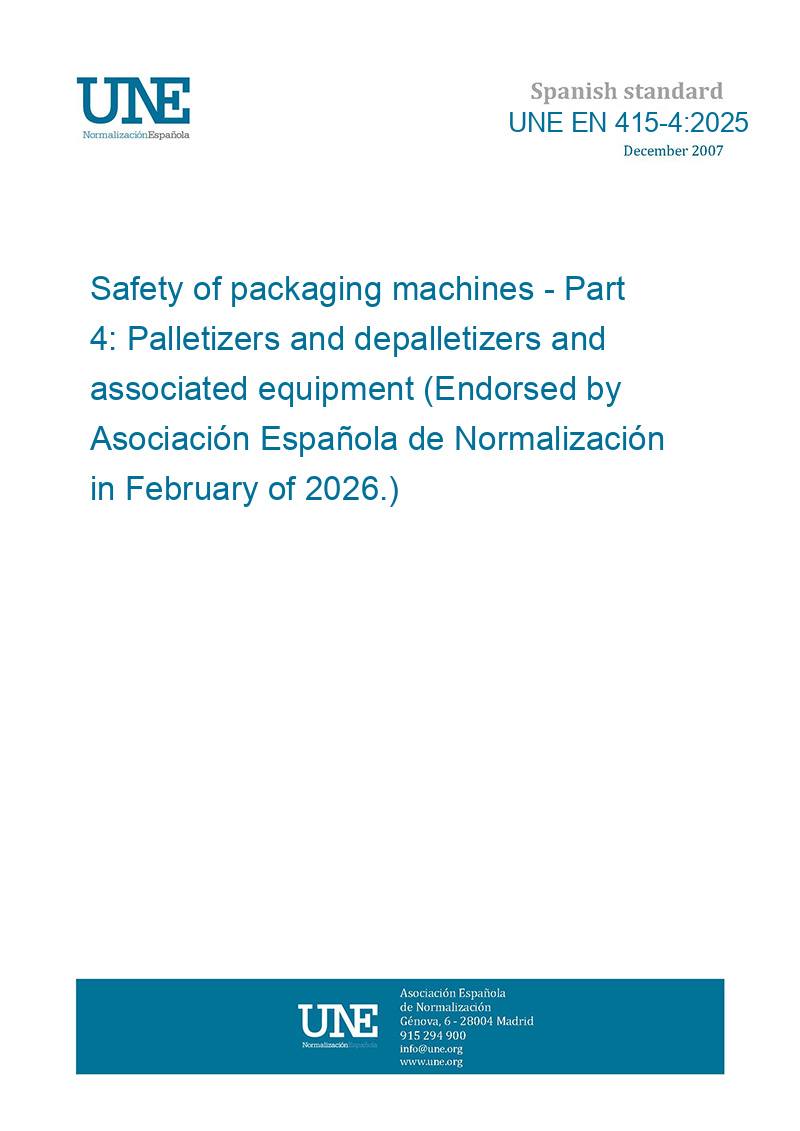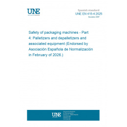 Seguridad de las máquinas de embalaje. Parte 4: Paletizadores y despaletizadores y equipos asociados. (Ratificada por la Asociación Española de Normalización en febrero de 2026.)