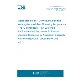 Material aeroespacial. Conectores eléctricos, rectangulares, modulares. Temperatura de utilización 175 ºC continua. Parte 006: Clavijas para 2 y 4 módulos, serie 2. Norma de producto. (Ratificada por la Asociación Española de Normalización en diciembre de 2024.)