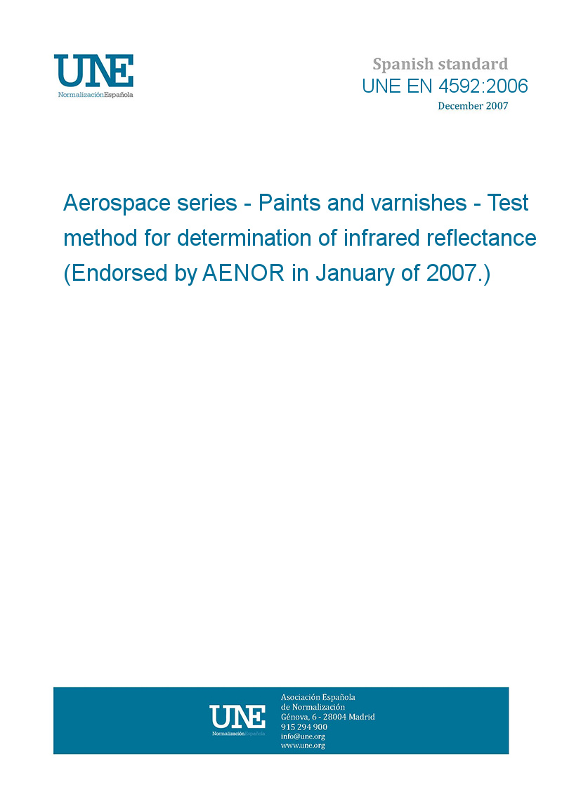 Material aeroespacial. Pinturas y barnices. Método de ensayo para la determinación de la reflectancia infrarroja. (Ratificada por AENOR en enero de 2007.)