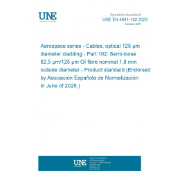 Material aeroespacial. Cable óptico, diámetro exterior de la funda óptica 125 µm. Parte 102: Cable de estructura semilibre, fibra de gradiente de índice 62,5/125 µm, diámetro exterior 1,8 mm. Norma de producto. (Ratificada por la Asociación Española de Normalización en junio de 2025.)