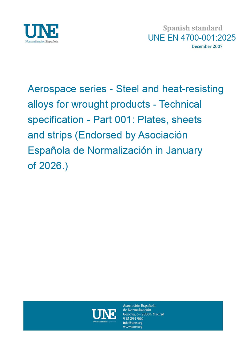 Aerospace series - Steel and heat-resisting alloys for wrought products - Technical specification - Part 001: Plates, sheets and strips (Endorsed by Asociación Española de Normalización in January of 2026.)