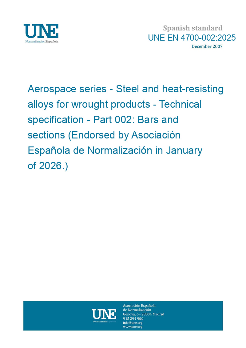 Material aeroespacial. Acero y aleaciones resistentes al calor para productos forjados. Especificación técnica. Parte 002: Barras y perfiles (Ratificada por la Asociación Española de Normalización en enero de 2026.)