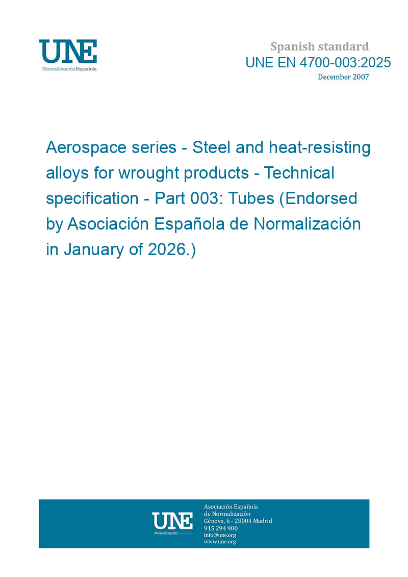 Material aeroespacial. Acero y aleaciones resistentes al calor para productos forjados. Especificación técnica. Parte 003: Tubos. (Ratificada por la Asociación Española de Normalización en enero de 2026.)