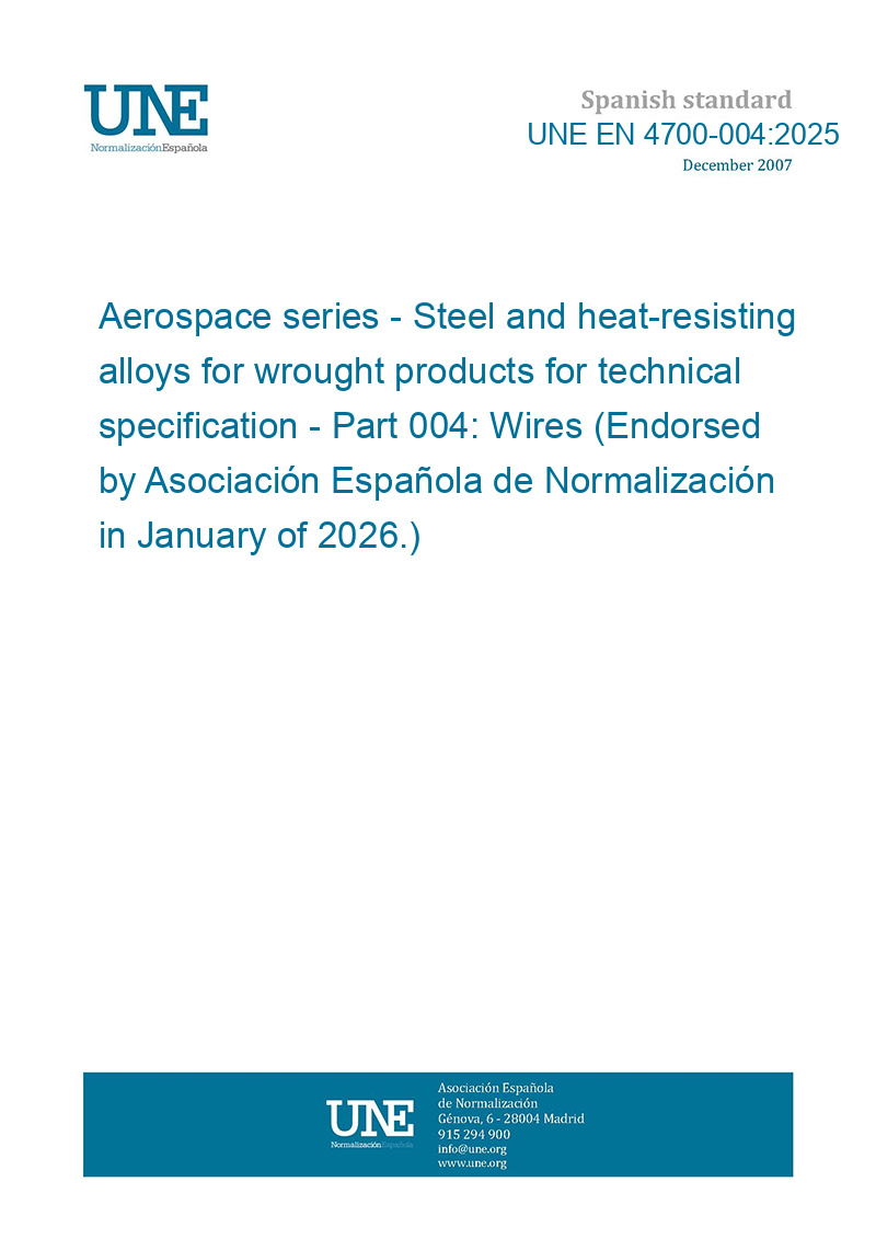 Material aeroespacial. Acero y aleaciones resistentes al calor para productos forjados. Especificación técnica. Parte 004: Alambres (Ratificada por la Asociación Española de Normalización en enero de 2026.)