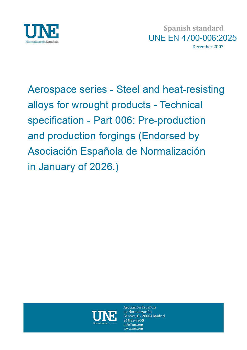 Aerospace series - Steel and heat-resisting alloys for wrought products - Technical specification - Part 006: Pre-production and production forgings (Endorsed by Asociación Española de Normalización in January of 2026.)