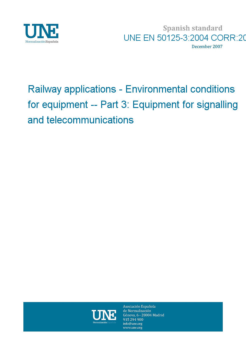 | Standard number: | UNE EN 50125-3:2004 CORR:2010 |