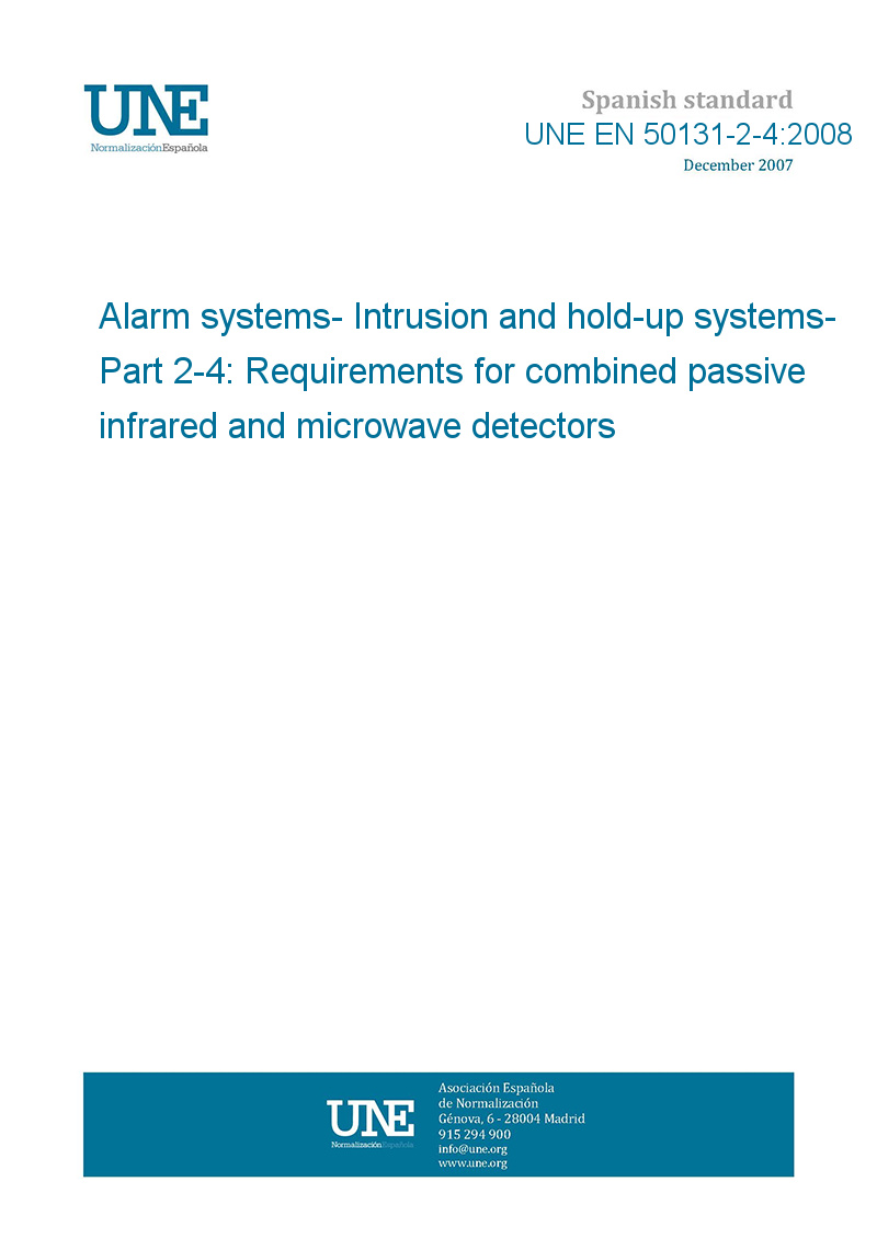 >UNE standards>UNE EN 50131-2-4:2008 Alarm systems- Intrusion and hold-up systems- Part 2-4: Requirements for combined passive infrared and microwave detectors
