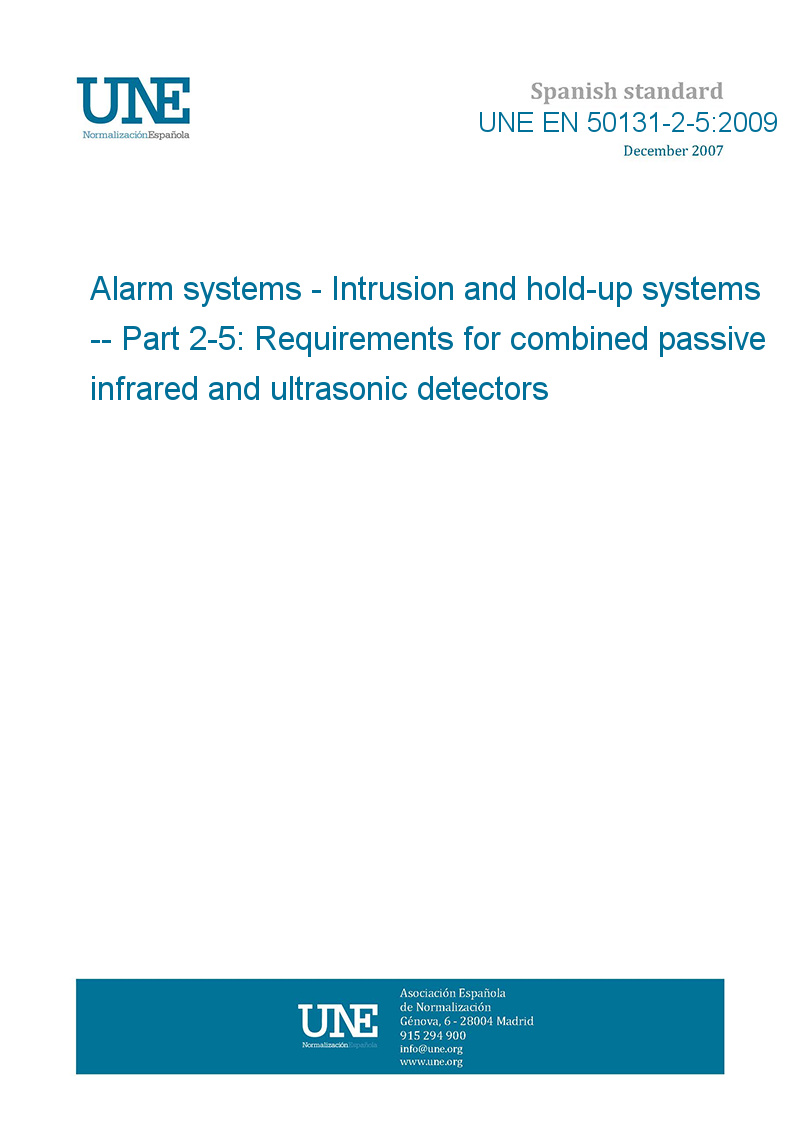 >UNE standards>UNE EN 50131-2-5:2009 Alarm systems - Intrusion and hold-up systems -- Part 2-5: Requirements for combined passive infrared and ultrasonic detectors