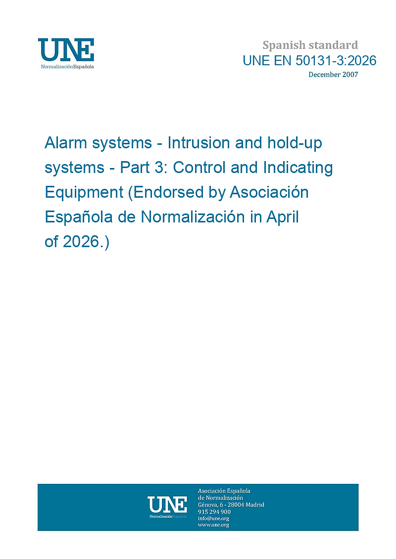 Sistemas de alarma. Sistemas de alarma de intrusión y atraco. Parte 3: Equipo de control y señalización. (Ratificada por la Asociación Española de Normalización en abril de 2026.)